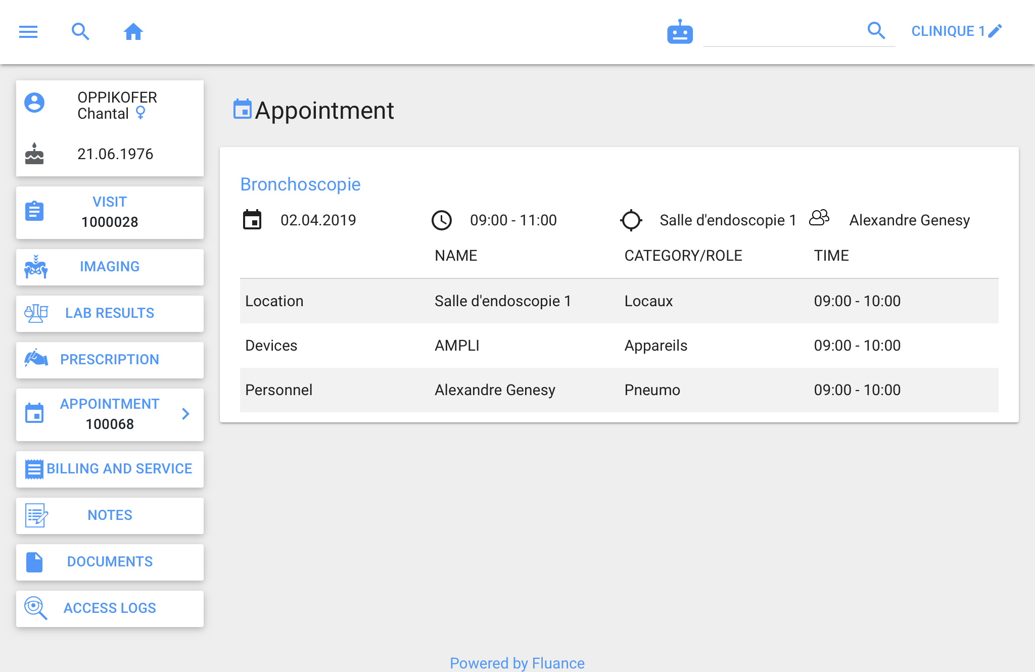 The table contains all the information about the location, used devices, all the staff involved, and for each the start time and end time.