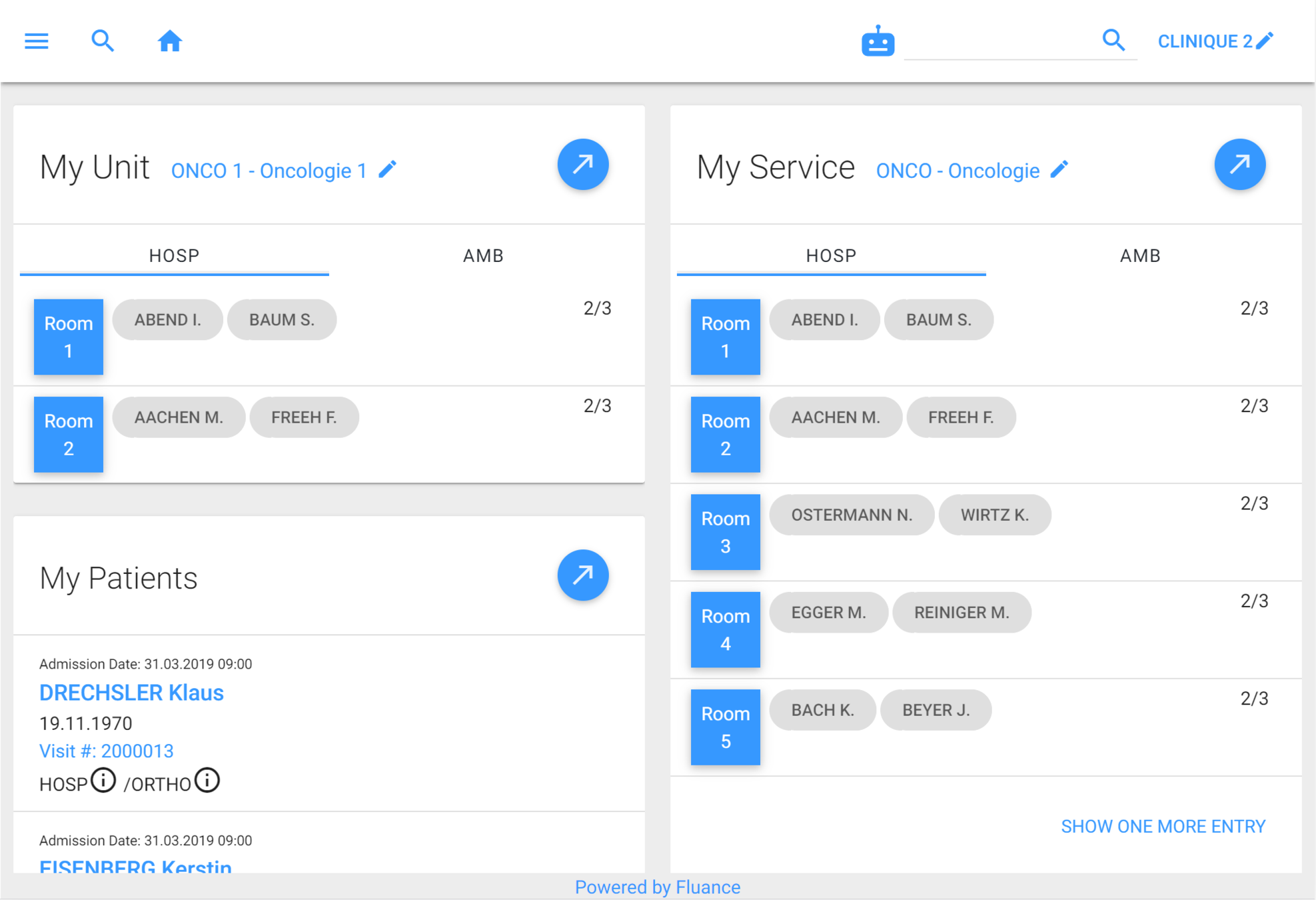 Overview "My cockpit": My Unit, My Service, My Patients, Patient Appointments, My Appointments, My latest search